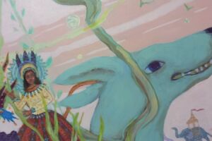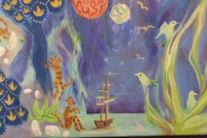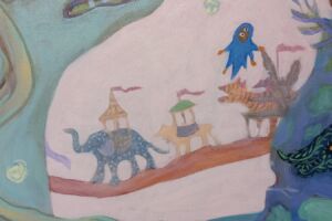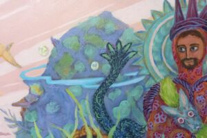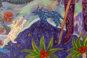 The title of this piece hints at my aim: for my created world to provide an escape from the horrors of the real world allowing the viewer into a new place where our collective unconsciousness, genetic memories, myths and stories all blend together into something new and yet maybe strangely familiar.